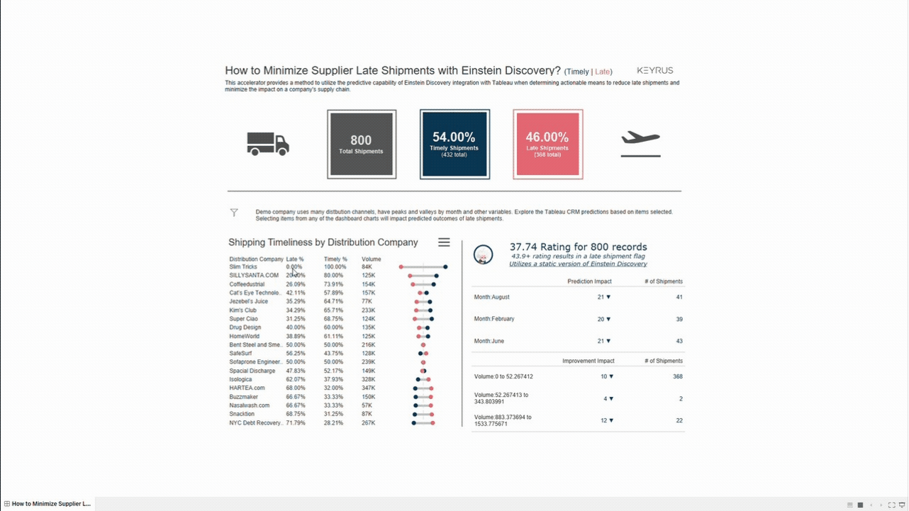 Leverage the predictive capabilities of Einstein Discovery and Tableau to discover actionable ways to reduce late shipments.